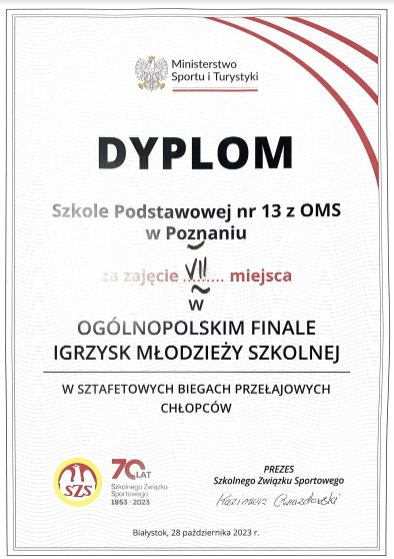 gdzie uczniowie naszej szkoły zajęli VII miejsce